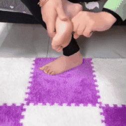Placera fötterna på mattan Sätt dig ner, slappna av och låt fötterna vila.